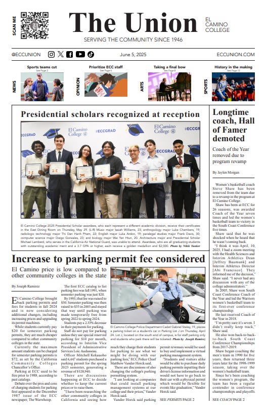 The Union is El Camino College’s student-run newspaper and the only local source of news for its college community. Everything published by The Union is produced by student journalists. The Union is proud to present the college community with weekly newsletters each semester.